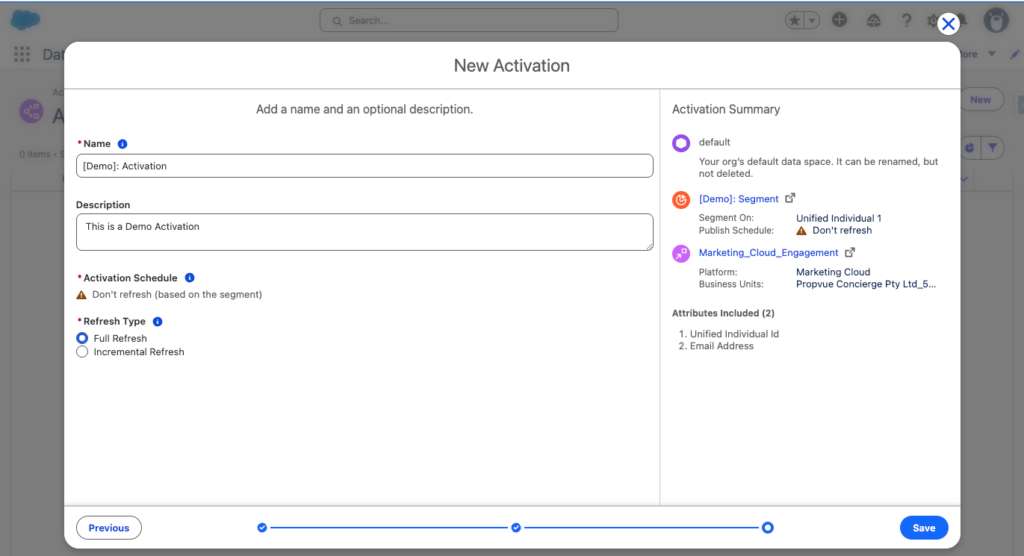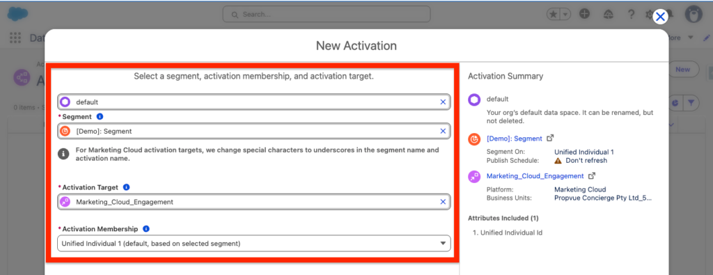 - Activation Target Name: Marketing_Cloud_Engagement