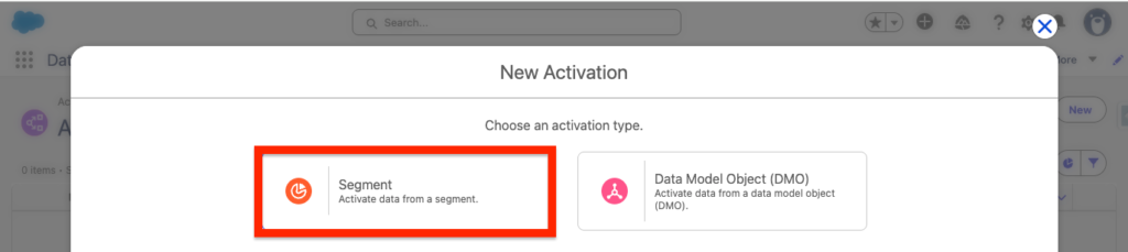 Next select Segment, as our objective is to push a Data 360 segment into Marketing Cloud Engagement.