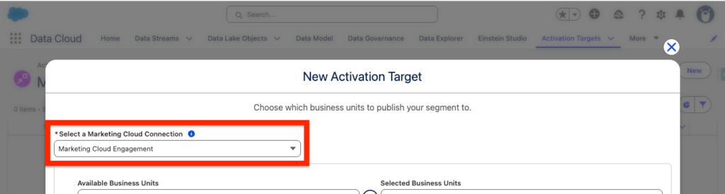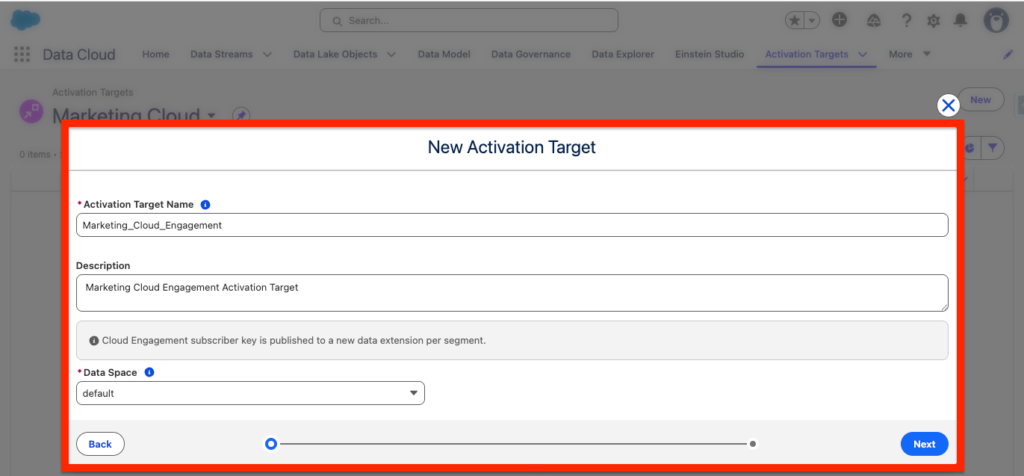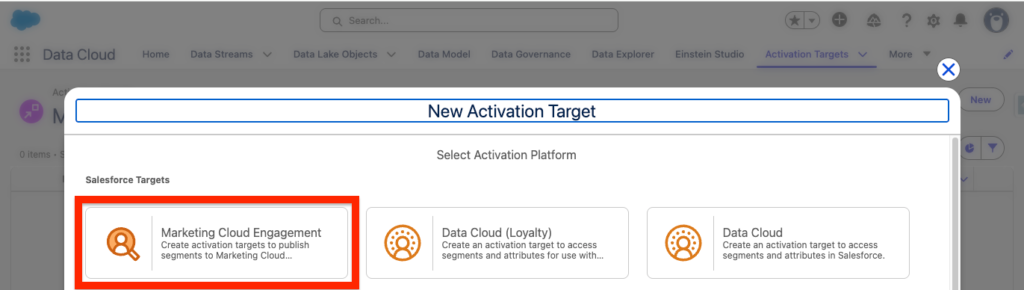 - Activation Target: Marketing_Cloud_Engagement: Created earlier as well