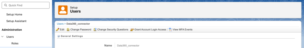 The user created in Marketing Cloud Engagement will be named Data360_Connector and will need to have the following permission sets: