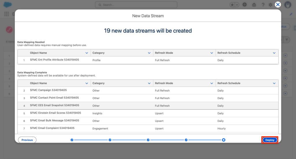 Finally I can click Deploy and the Data Streams will be available into Data360.