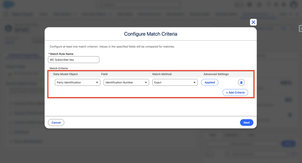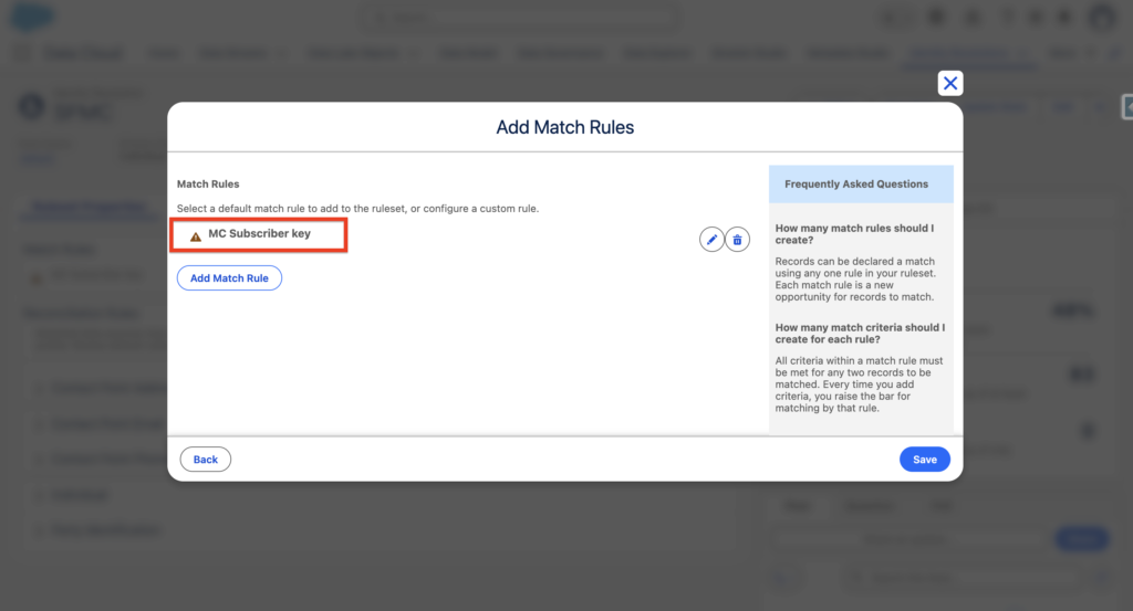 Name of the custom match rule: MC Subscriber Key
