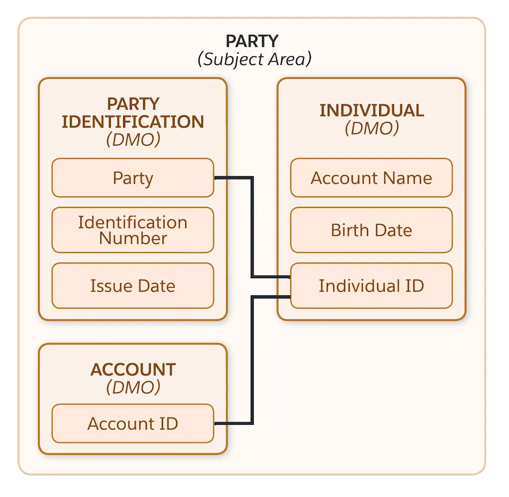 In the Customer 360 Data Model, the “Party” area has nothing to do with celebrations! “Party” refers to the collection of Data Model Objects (DMO) that store information about Individuals.