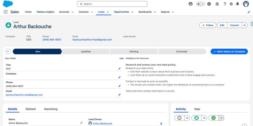 I’ve created a new Lead in my Salesforce CRM.
