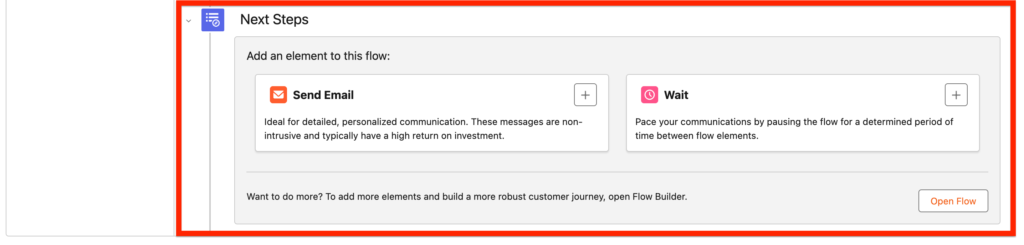- Message Series: Build a sequence of personalised emails in Flow Builder to keep people engaged.