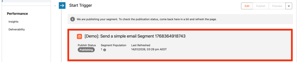 After selecting the Campaign Member segment we Publish it.