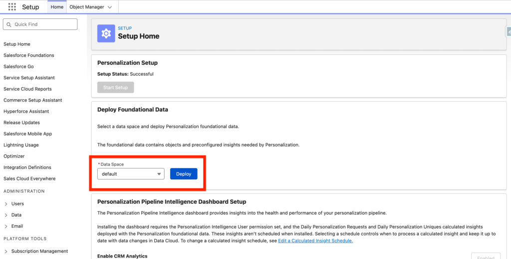Then click on ‘Go to Personalization’ within the (Optional) Set Up Salesforce Personalization.