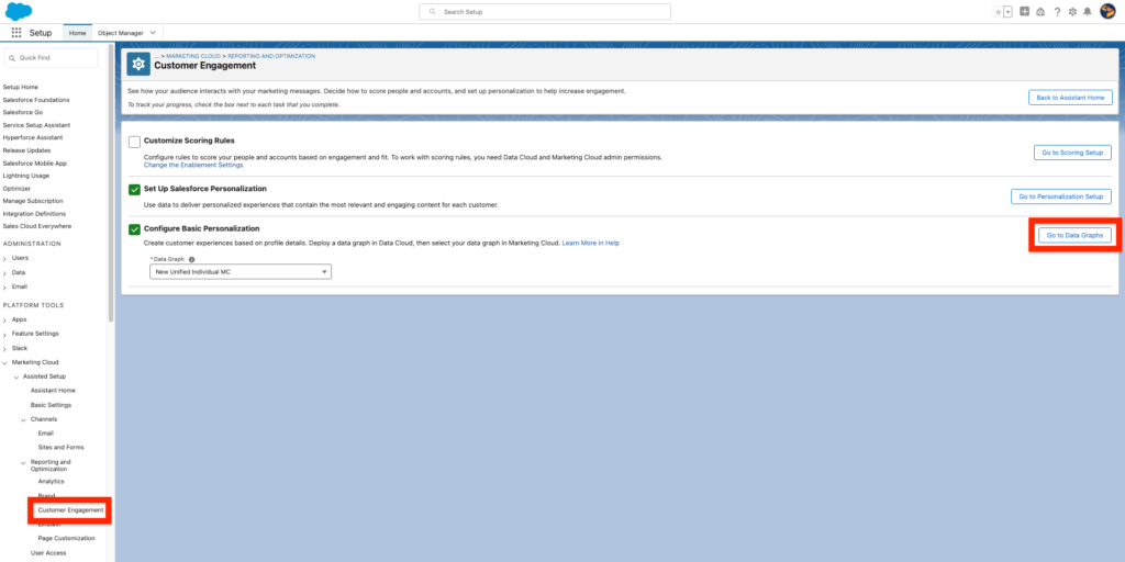 In Marketing Set-up, click ‘Customer Engagement’ and then ‘Go to Data Graphs’.