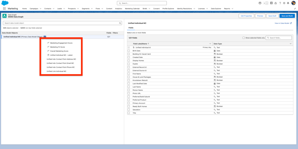 You will need to select the Data Model Object that relates to you Unified Individual Object and that will be in use when sending email communications. The recommended related objects to select are: