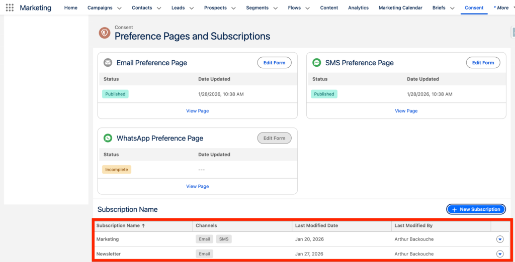 As a result you can now see that I have 2 subscriptions available for my customers: Marketing which is the generic/default one and Newsletter which is the one we just created together.